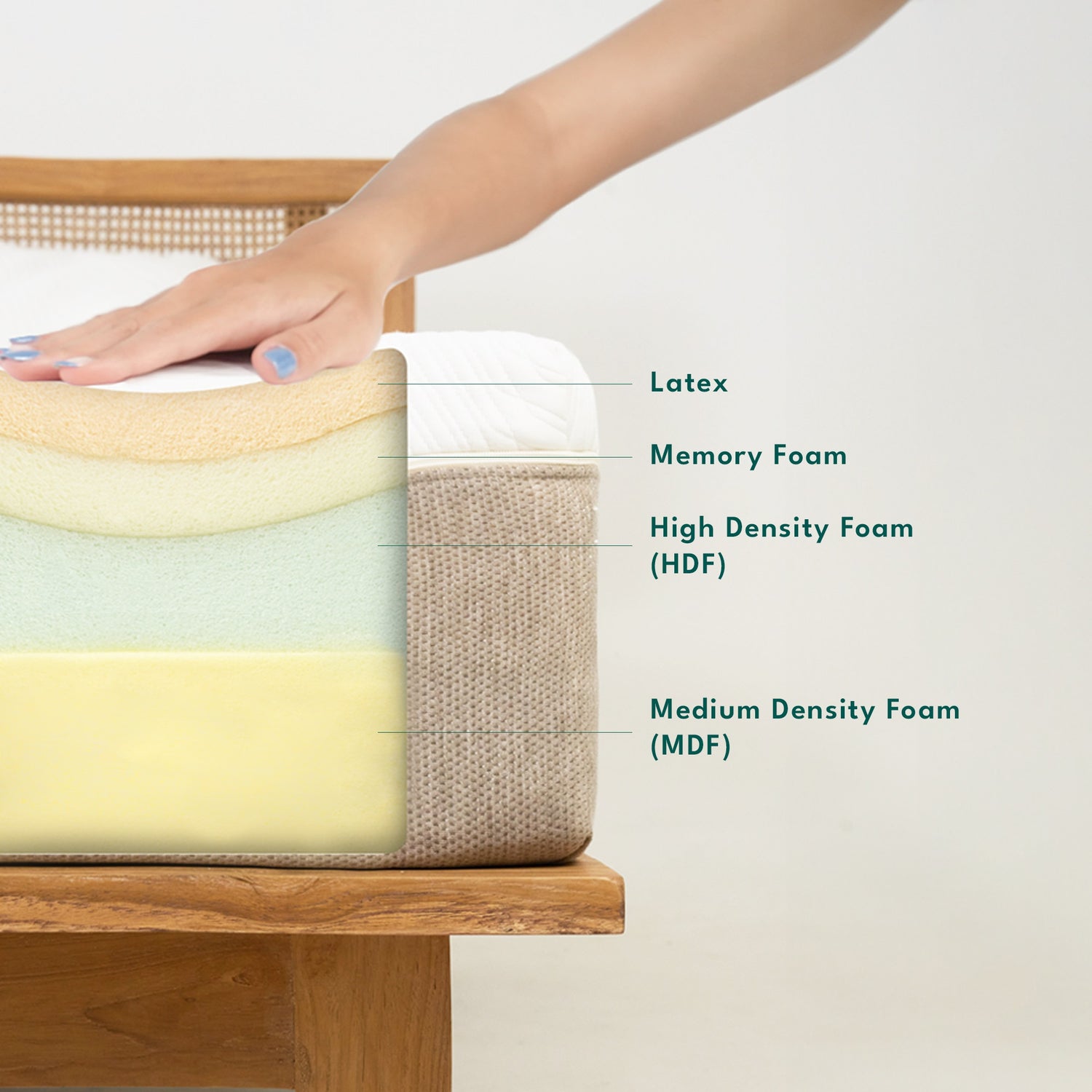 Our mattresses are made using a carefully balanced combination of latex and premium memory foam. This material pairing provides responsive support, effective pressure relief, and enhanced airflow, making it especially suitable for Bali’s warm and humid climate. Compared to conventional foam mattresses, this construction helps regulate temperature and manage moisture, creating a cooler and more comfortable sleep environment throughout the year.